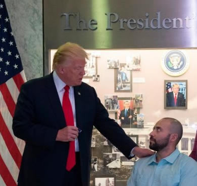 ほとんどの報道機関はその日、大統領がゴルフをプレイすると予想していたが、大統領は予想を裏切りメラニア・トランプ夫人を伴ってウォルター・リード軍医療センターを訪れた。大統領はそこで、アルヴァーロ・バリエントス一等軍曹に賞を授与した。
