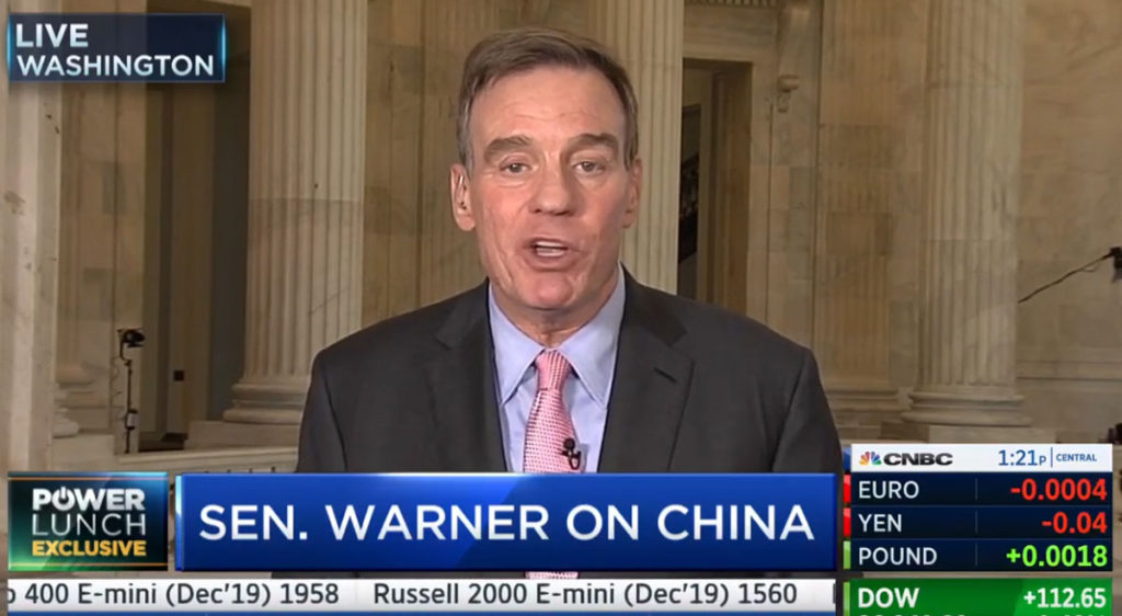 マーク・ウォーナー上院議員(民主党、バージニア州)は22日にCNBCで、大統領が貿易慣行をめぐって中国政権と対立していることを支持すると述べたが、トランプの争議の対処方法については批判的だった。