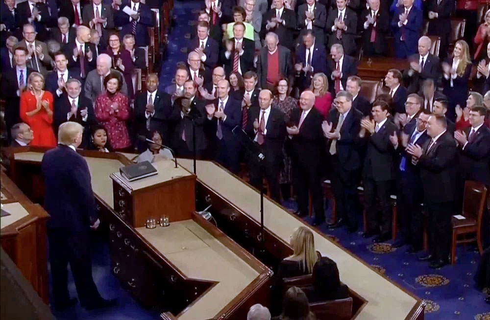 トランプは好景気を強調し、外交政策を明確に述べ、米国の未来に対する自分のビジョンをこの国の英雄的な過去と開拓精神に結び付けた。またリアルタイムで奨学金を与え、リアルタイムで自由勲章を授与し、夫であり父である兵士を感動的に家族と再会させ、レーガン大統領が自身の年に一度の演説中に初めて客席にいる米国の英雄を目玉にして以来、最も感動的な一般教書演説にした。