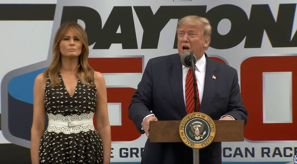 大統領はデイトナ・インターナショナル・スピードウェイに集まった「何万人もの愛国者」にレース前の短いスピーチで感謝を伝えた。