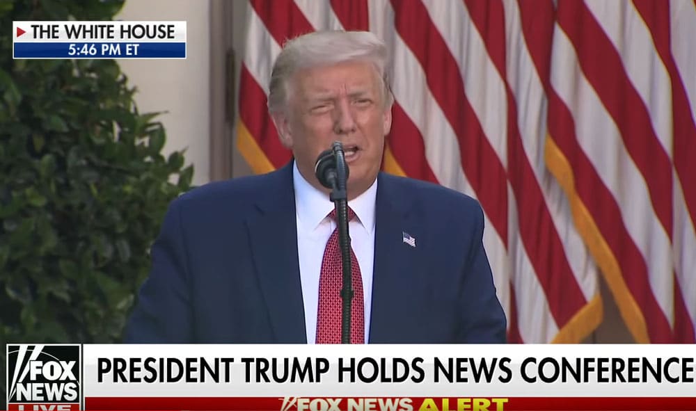 またトランプは、チャンスを利用して今年後半の選挙の対向者である、民主党大統領候補者のジョー・バイデンを批判した。