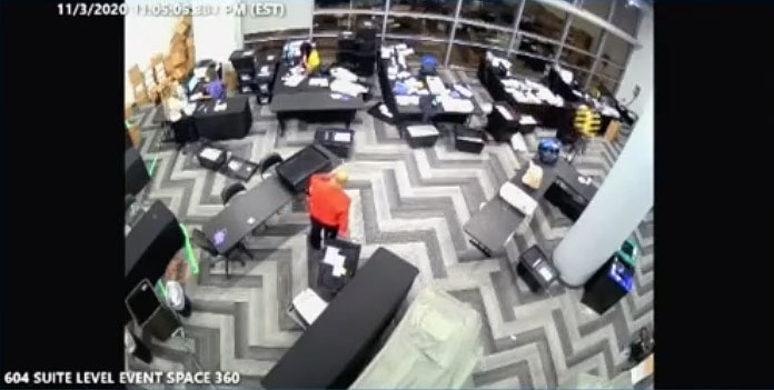 トランプ陣営弁護団は3日のジョージア州での緊急公聴会で、フルトン郡の選挙管理員が、選挙立会人が夜になったので帰宅するよう言われた後に、票でいっぱいのスーツケースを運搬する様子を示すビデオを提示した。票はその後、少なくとも2時間証人の監視なしに集計された。