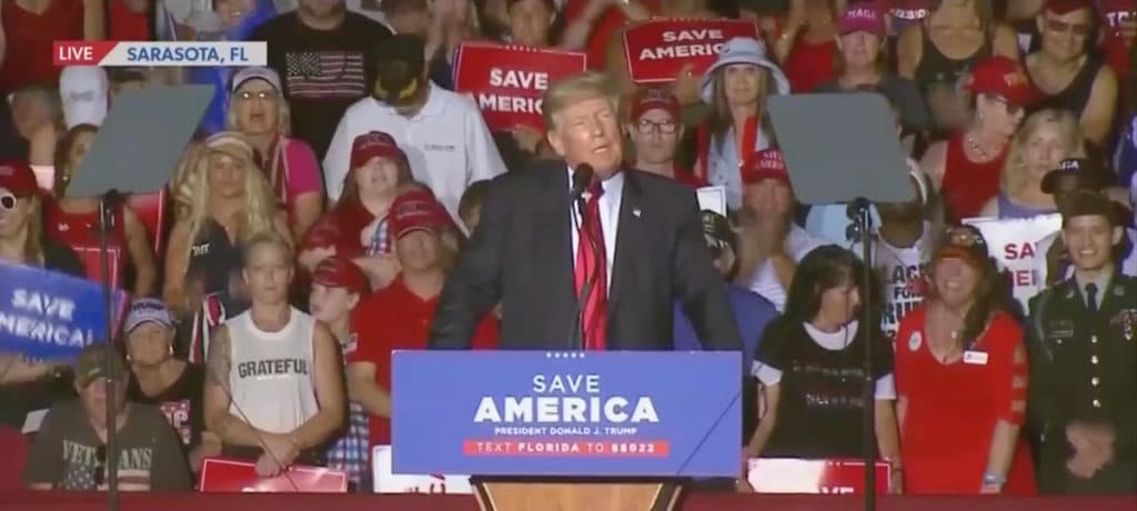 トランプの集会は、「セーブ・アメリカ」ツアーの一環としてフロリダ州サラソータで大規模な聴衆に対して1時間以上続いた。FOX13タンパベイによると、トランプは移民、経済、外交、そして2020年選挙といった多岐にわたるテーマを取り上げた。