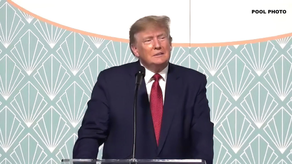 ドナルド・トランプ前大統領は21日の演説で、バイデン大統領は米軍がアフガニスタンのバグラム空軍基地から撤退したことなどによって、米国を敵に対してより脆弱にしたと警告し、自分だったら中国の核開発を監視するために基地を保持していただろうと述べた。