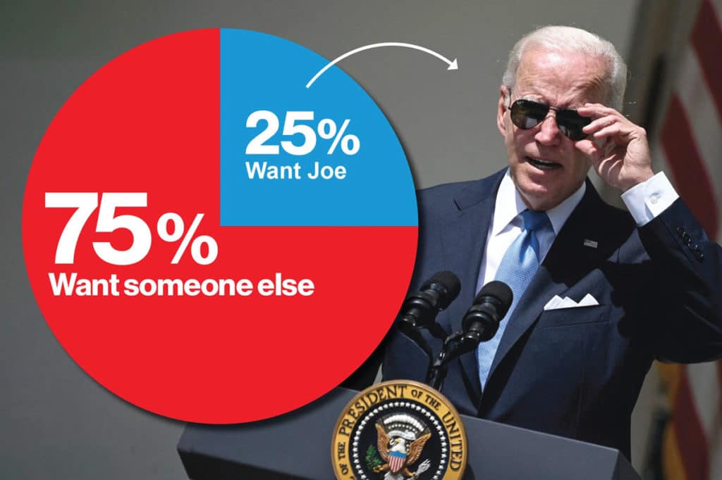 最新の世論調査によると、民主党または民主党寄りだと自認する有権者の4分の3は、バイデン大統領以外の人物が2024年に党の旗手に選ばれることを望んでいる―そして約4分の1はバイデンが2期目を勝利できないと考えている。